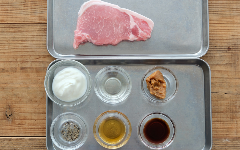 味噌やヨーグルトなど発酵食品をたっぷり豚肉にからめて作るヘルシーなトンテキです。
