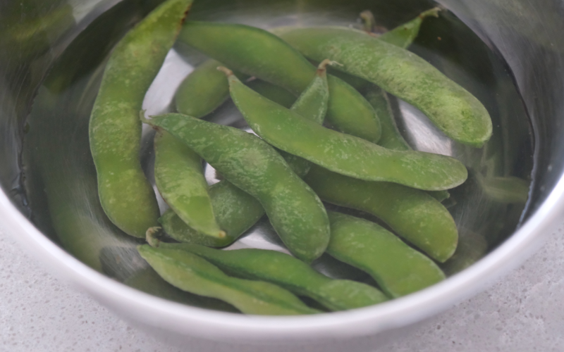 冷凍枝豆は塩茹でしたものを使っています。(味がついていない枝豆でもOKです)