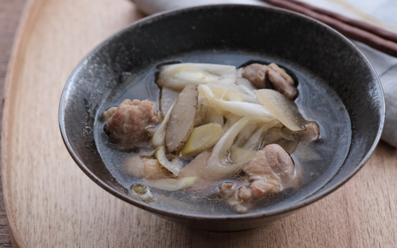 しょうがやねぎは、体に入り込もうとするウイルスを跳ね除ける働きがあると言われています。鶏もも肉はコクを出しつつ、やさしく体を温めてくれる心強い食材。たっぷり作れるので、冷蔵庫で保存して数日かけて楽しむのもおすすめです。忙しい日の「温めたい」に寄り添ってくれる、頼れるスープです。