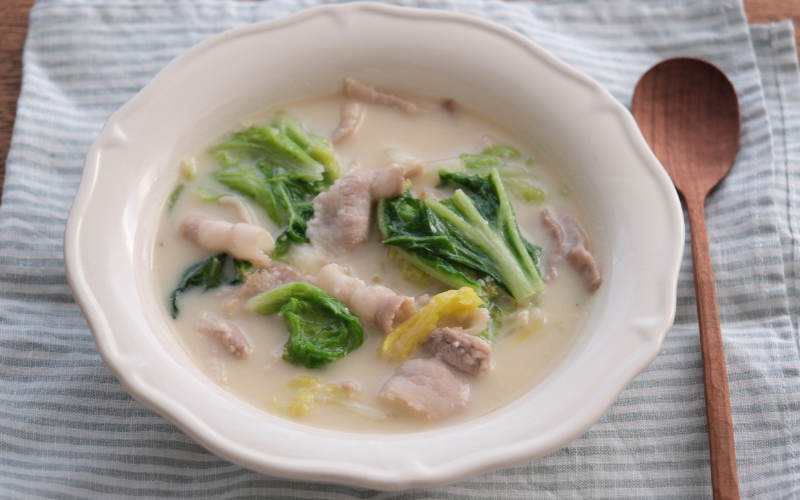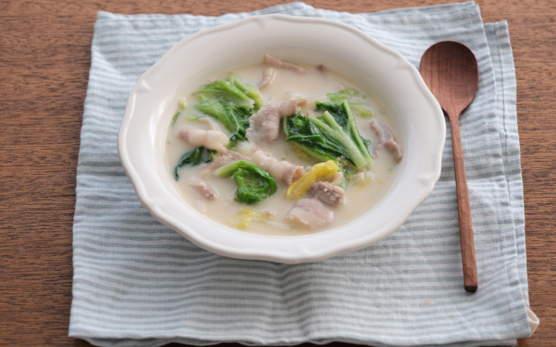 こっくりまろやか『くったり白菜と豚肉の甘酒豆乳スープ』